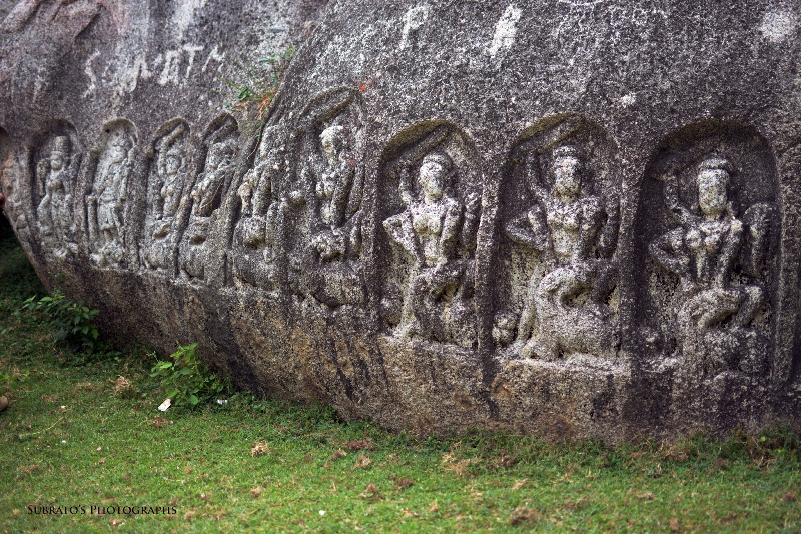 The place was Kawa-Dol (Kawva-Dol), a small group of granite rock hillocks situated near the village Kurisarai in Belaganj Block in Gaya District of Bihar. Kurisarai is located 24 km from district headquarters Gaya and 84 km from Patna. Spheroidal weathering has given the hillock a domal shape.Kawa-Dol or Kawva-Dol is situated just 3km from the famous Barabar caves, oldest surviving rock-cut caves in India. At Kawa-Dol we found some excellent reliefs carved into the rock walls. On the rocks of the northern and eastern face of Kawa-Dol hill, numerous figures representing mostly Hindu deities like Hara-Gauri, Mahishasuramardini Durga, and Ganesa etc. can be seen. A few figures of the seated Buddha are also noticed viz of Vajrasattva, Prajnaparamita and a seated Buddha. The sculptures may be assigned to a period between 800 to 1200 A.D.